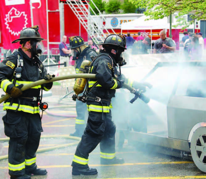 requirements will reduce friction among the rank and file because the process to that goal is fixed and equitable. Here, firefighters demonstrate a car fire training procedure at FDIC. (Photo by Jodi Magallanes)
