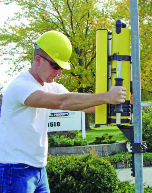 The side mount adapter fastens quickly to all U-channel posts, ranging in size from a two-pound-per-foot all the way up to a four-pound-per-foot post. Whether the job calls for driving an eight-foot post or a 14-foot post, this adapter will allow the operator to drive from a comfortable height with his or her feet on the ground.