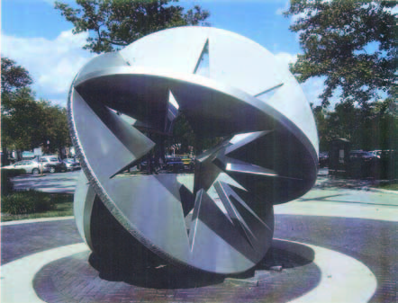 Susan Ewing’s piece, “Starsphere 2010,” is located in the University Esplanade Circle at Kent State University. An Ohio law requires one percent of public building appropriations over $4 million to be allocated to fostering culture and the arts and encouraging the development of artists and craftspeople. (Photo provided)