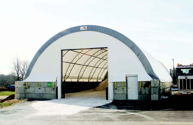 ClearSpan fabric buildings cost less and can be constructed more quickly than wood-framed structures. In Stephenson County speed mattered last year, because the previous salt storage facility was destroyed during a summer windstorm. (Photo provided)