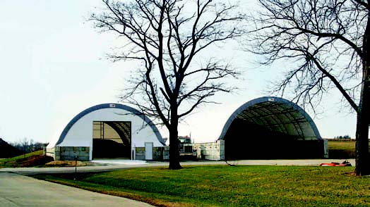 When the Stephenson County Highway Department lost its old salt storage building during a windstorm in July 2011, County Engineer Chris Isbell had to make a quick decision to be ready for the upcoming winter. The highway department, located in northwestern Illinois, had previously been using a wooden bin inside a 100-year-old dairy barn. That building, which was part of an old county farm, held only about 750 tons of salt — approximately 25 percent of the county’s average annual usage. Explains Isbell, “The building also didn’t provide any storage space for our salt/aggregate mix, requiring a full-time loader operator to mix material as it was used.”
