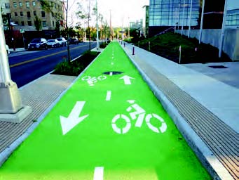 Transpo Industries provides color pavement surfacing for bicycle paths, bus lanes, crosswalks, pedestrian areas and airfield markings. The material has long-term durability, color retention, easy application and a fast cure, making it an excellent, low-maintenance color pavement marking solution. It’s long-lasting too, and custom colors are available.