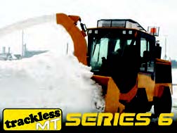 The Trackless Snowblower is an efficient, two-stage, twin auger unit that excels at removing snow from sidewalks. It’s available in four widths: 51-inch, 60-inch, 70-inch and 80-inch, all of which will accept either a sidewalk chute or a quick-change truck loading chute. A new generation, high-output Ribbon Snowblower is also available.