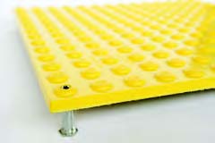 Step-Safe Americans with Disabilities Act polymer concrete detectable warning tiles have a proven record of strong resistance to the effects of wear, weather and other environmental conditions. They are available in 1-foot x 1-foot, 2-foot x 2-foot and replaceable tiles with anchors. Standard colors are charcoal grey, forest green, bright white, brick red, chocolate brown and safety yellow.