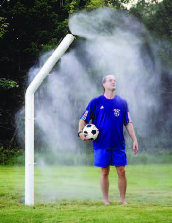 Now, picture this: the park, downtown, still 4:30 p.m. on Saturday. The weather is, instead, nearly 85 degrees; but with the new outdoor cooling mister, members of the local men’s soccer team can play for a good few hours before they’re tired out. Kids bring swimsuits to the park to run through the customized play towers. Dogs and people alike can get their exercise at the park, knowing the fountain or bottle filler they need is exactly what they’ll find at the park, and city officials will have the peace of mind of knowing the refreshment equipment will last for years to come.