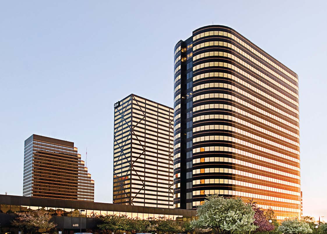 - The skyline of Southfield, Mich., shows in part the “Golden Triangle,” a cluster of five skyscrapers in Metro Detroit’s fashionable office district. (Photo courtesy city of Southfield)