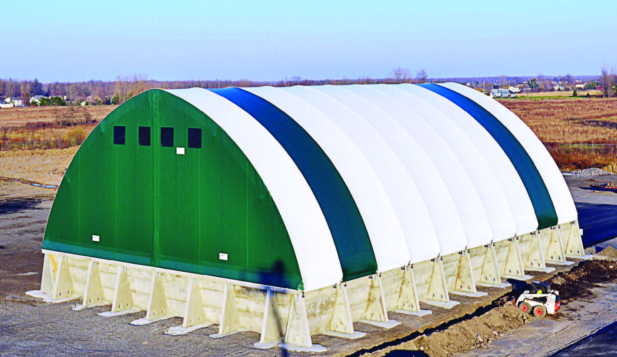 The 72-by-100 HT series salt and sand storage structure from Calhoun Super Structure was installed by Hybrid Building Solutions for the town of Clarence, N.Y. (Photo provided)