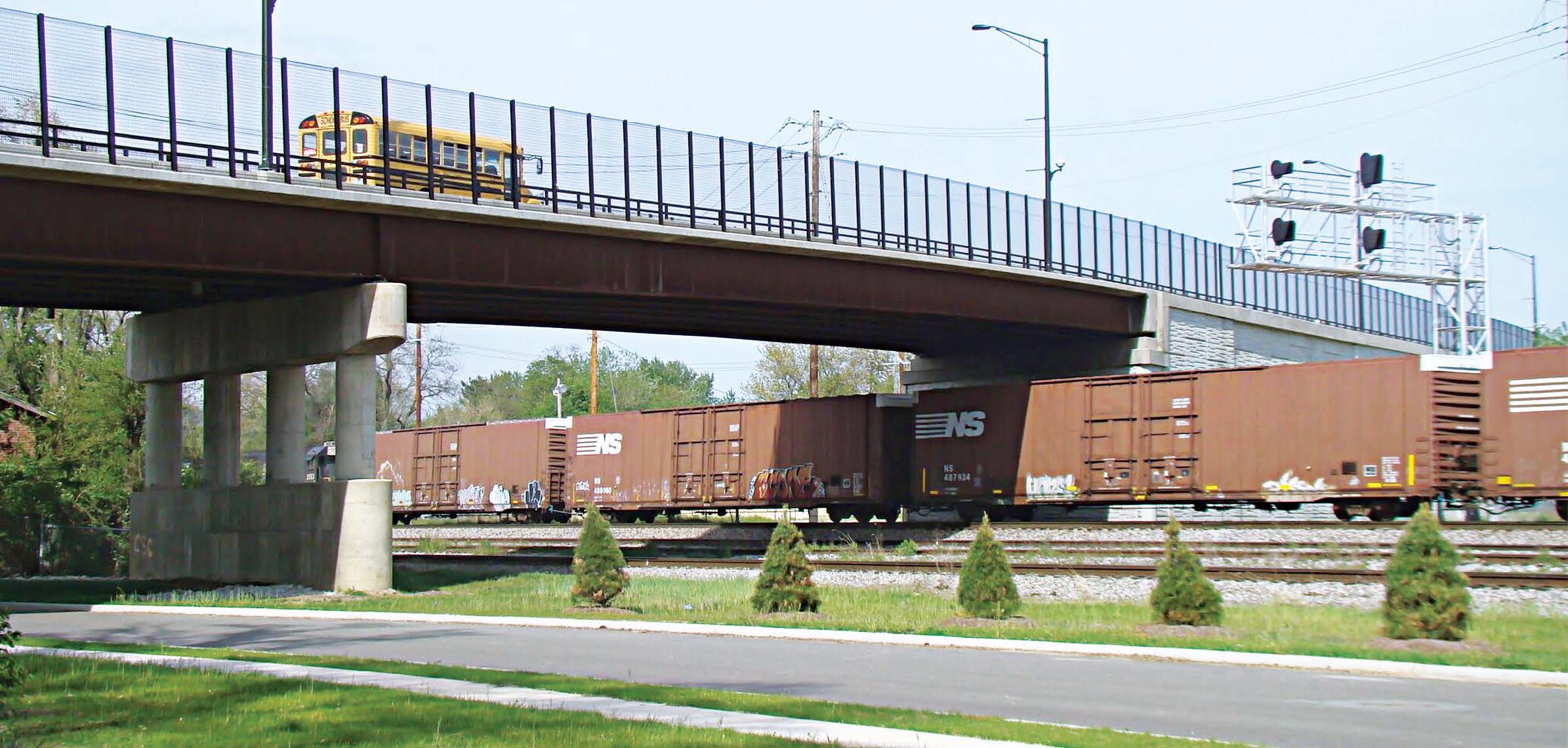 The highway in question, named Fairchild Street, connected the city’s center, its hospital and high school with the Indiana state line, Interstate 74 and Illinois Route 1. Fairchild is the only east-west route across town that is uninterrupted by at-grade crossings, so closing it would mean traffic — including ambulances and police — would be gravely impeded. At the same time, upwards of 85 trains per day crossed the community, many of them over the aging viaduct. As a major railroad intersection, with tracks serving CSX Transportation and Norfolk Southern Railway entering town from different directions, rerouting trains was equally impossible.