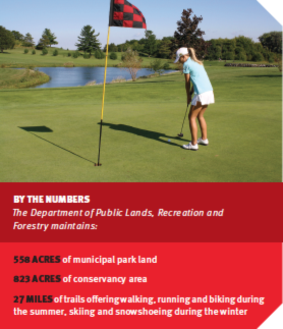 The Department of Public Lands, Recreation and Forestry maintains 558 acres of designated municipal park land. It’s also responsible for 823 acres of conservancy area. Pheasant Branch Conservancy alone is 550 acres that boast more than 90,000 annual users, three times the local population.