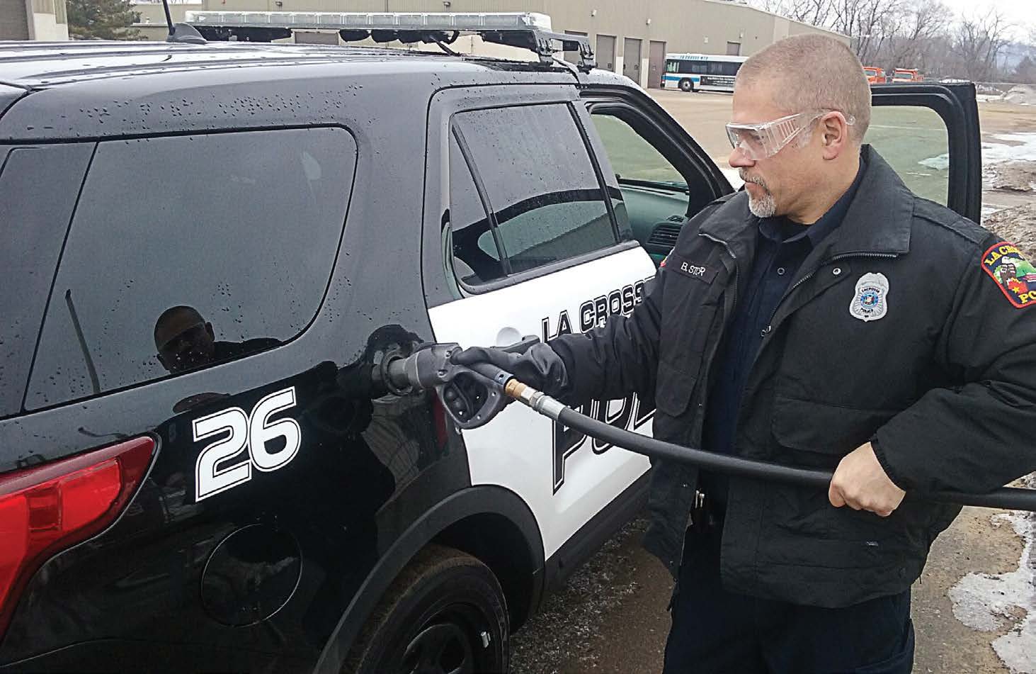Unlike a dedicated propane vehicle, which runs exclusively on an alternative fuel, a bi-fuel propane tank is one that ignites the engine with traditional gas and then transitions to propane after the vehicle is in operation. It is a seamless transition that the operator does not notice. However, La Crosse officers who have used these patrol cars said the propane provides a smoother ride, emits less air pollution into the atmosphere and saves plenty of money in fuel costs throughout the year. Propane also performs well in cold weather climates that often experience issues with liquid fuel and cold starts during periods of inclement weather.