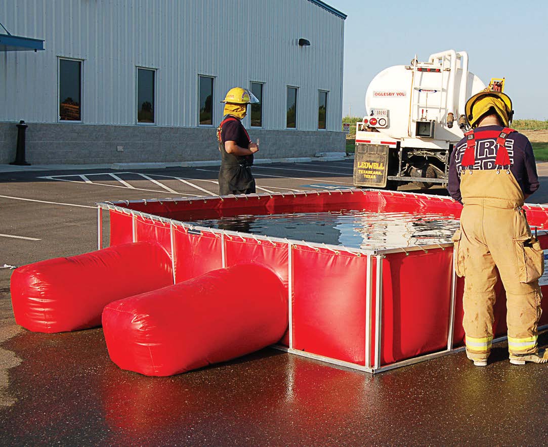 Husky® is well known for its firefighting products, which include folding frame tanks, self-supporting tanks, salvage covers, strainers and many other items related to the water shuttle industry. Husky® also manufactures environmental safety products that are designed to protect the environment by containing spills and storing harmful liquids. These products include spill containment berms, bladder or pillow tanks, de-con pools and showers along with many other products to help keep the environment safe against fuels, chemicals and other toxic materials.