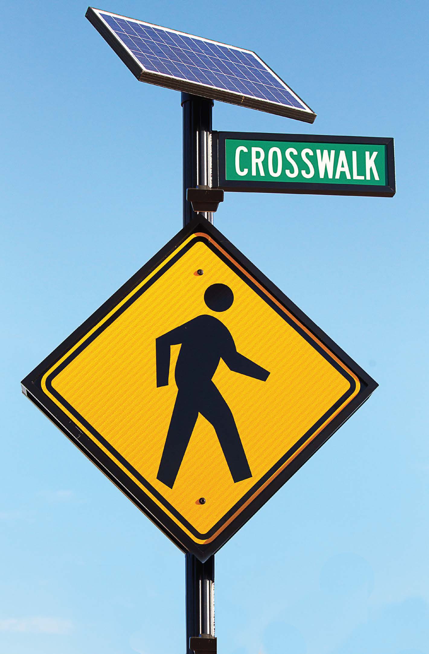 The purpose of a crosswalk, after all, is to get pedestrians safely across the road, either at an intersection or in the middle of the street. Some towns have elected to supplement these specially marked crosswalks with advanced overhead or post-mounted warning signs, flashing lights, audible tones or supplemental pavement markings.
