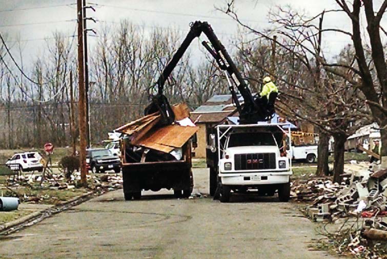 “The day following the tornado, I rode around with the public works director of Coal City,” Doerfler said. “I had never seen anything so devastating. We took a map and tried to do a damage assessment. I started out very organized by classifying areas one, two or three. By the end I was marking the map with bad, really bad and ‘h… s…’ bad. Upon completion of the damage assessment, we reached out to the IPWMAN duty officer and requested some resources for the following day. We quickly broke the town down into zones and worked to clear those areas. By the third day of the cleanup, we had numerous resources from all over the state of Illinois at our command.