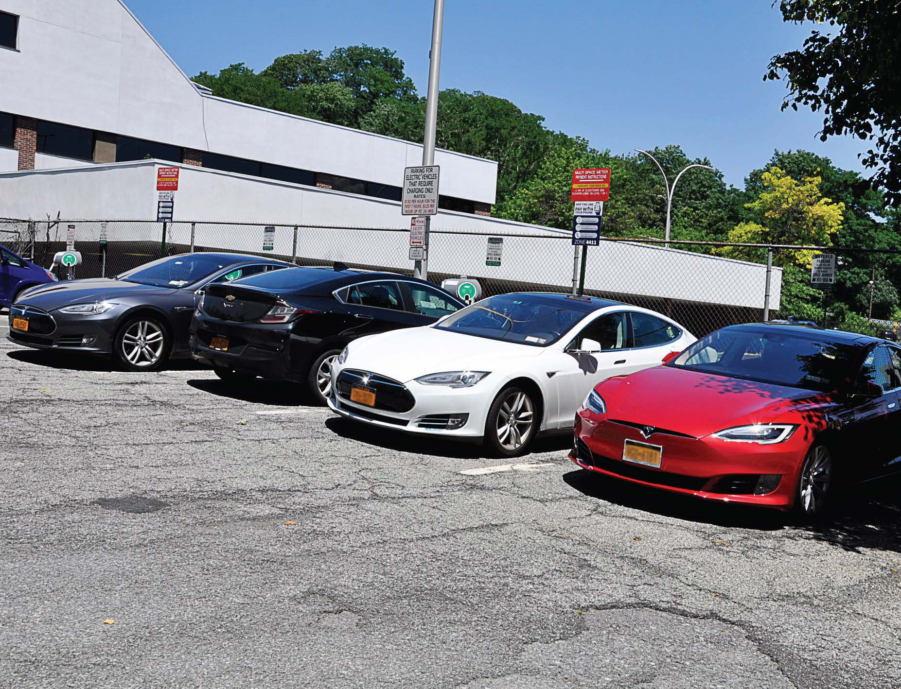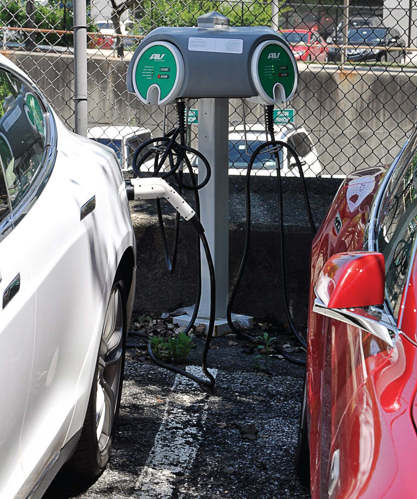 - Multiple vehicles take advantage of White Plains, N.Y.’s EV charging stations. (Photo provided by city of White Plains)