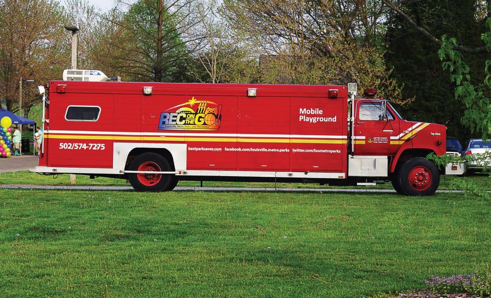 - Louisville, Ky., Metro Parks and Recreation converted a 30-foot decommissioned fire truck into a mobile playground driven by school bus drivers in the summer months. It is used to reach kids who might not be able to participate in summer programming for various reasons. (Photo provided)