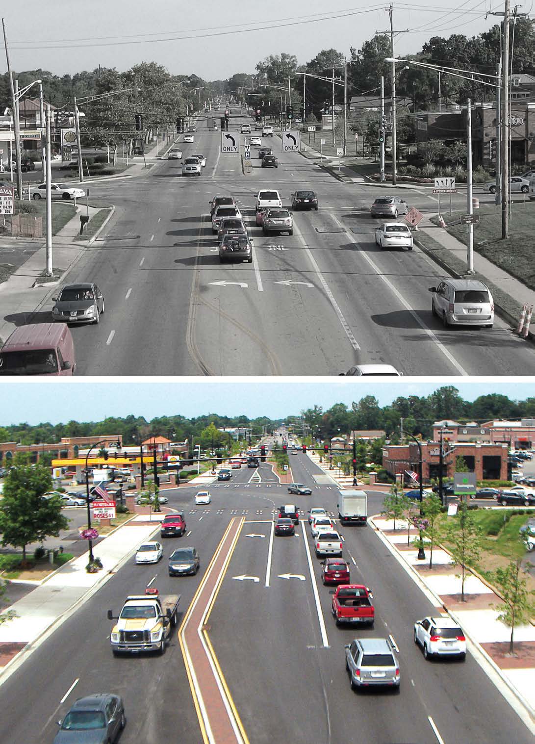 - The intersection of State Street and Schrock Road is one infrastructure project that took precedence as the primary gateway into the city. A multi-year project, citizens were kept apprised to its progress via GoWesterville. Pictured is the before and after of this intersection. (Photos provided)