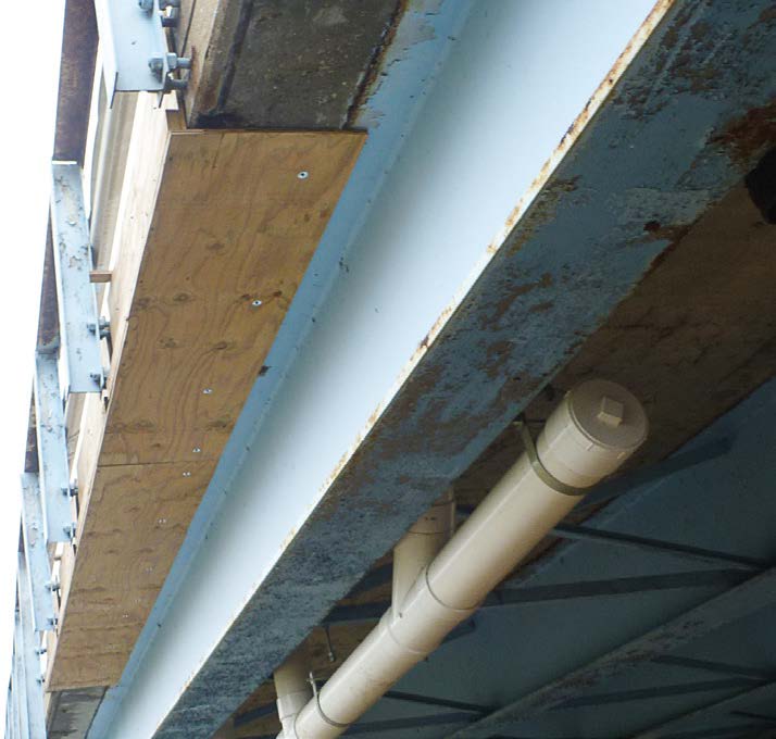 - Plywood was used to prevent debris from falling on the bike path below prior to the construction of a new bridge. (Photo provided)
