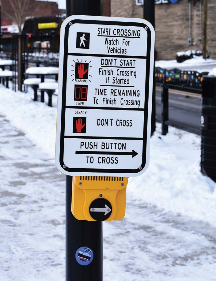 - The redesigned State Street in West Lafayette also takes pedestrian traffic into consideration with updated crosswalks. (Photo by Sarah Wright)