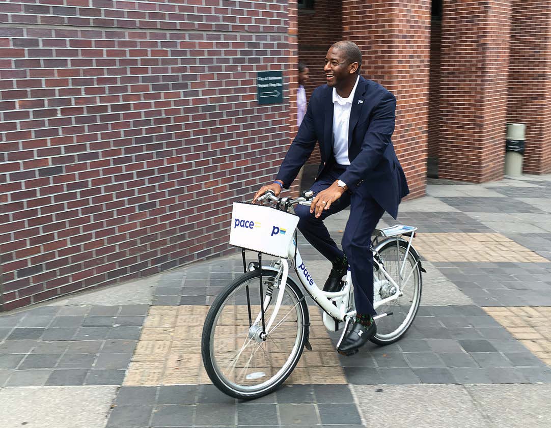 - Tallahassee Mayor Andrew Gillum rides a Pace bike. (Photo provided)