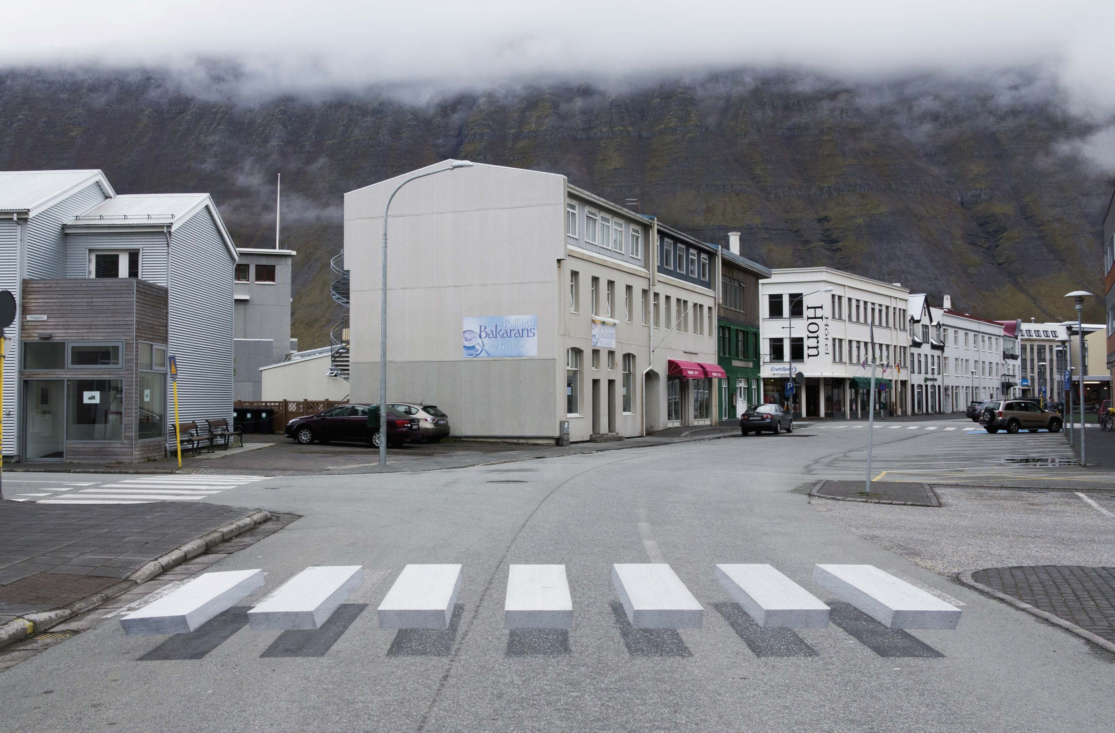 - Ísafj örður, Iceland, decided to get creative when it came to catching the attention of drivers with its new 3-D pedestrian crosswalk. (Shutterstock.com)