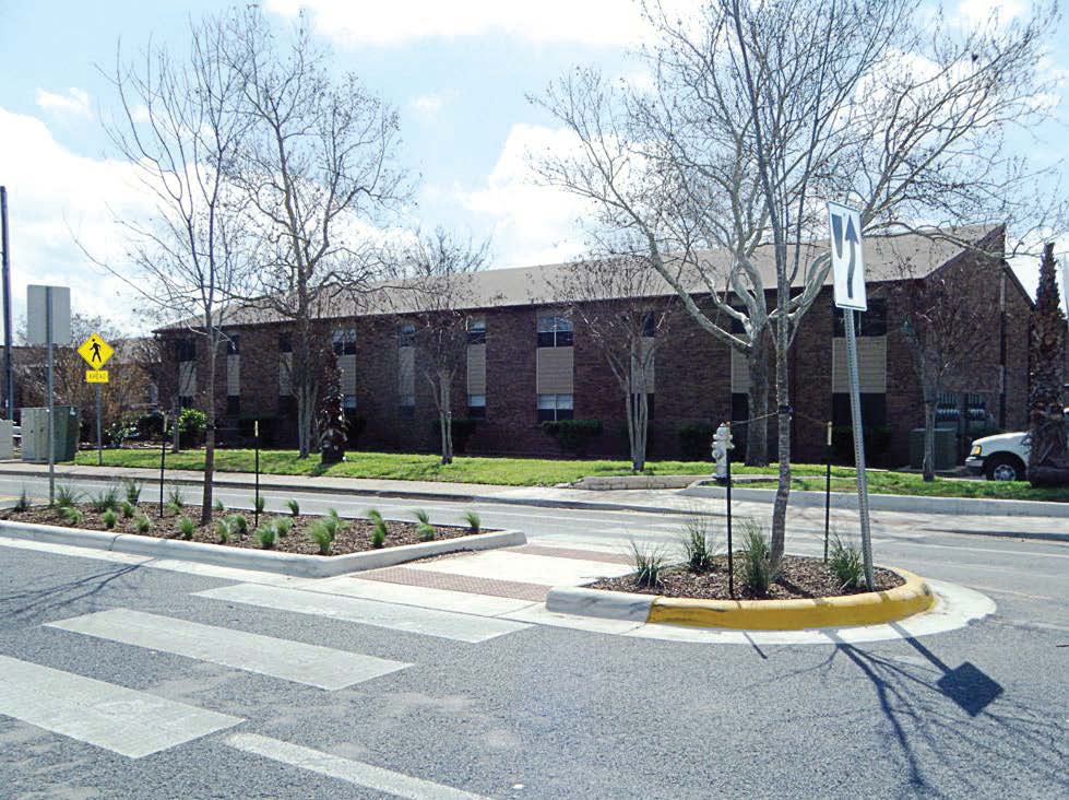 - Pedestrian safety islands are another design that cities are choosing to install. Small updates can also improve safety, such as clearly painting crosswalks and checking that both street signals and walk/ don’t walk signs are operational. (Photo provided by National Association of City Transportation Officials)