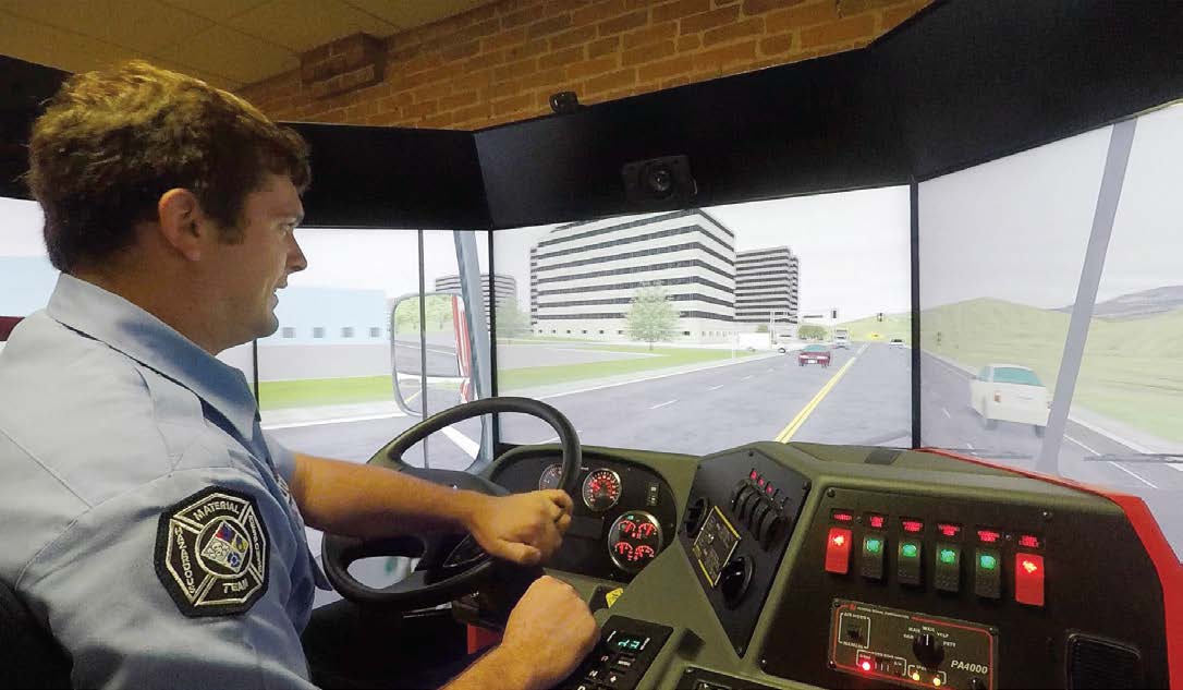 - The driving simulator offers the realistic sights and sounds of a fire apparatus while challenging those in the simulator with unexpected obstacles and environmental changes. (Photos provided)