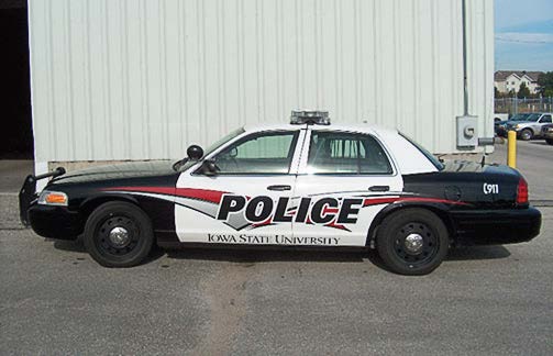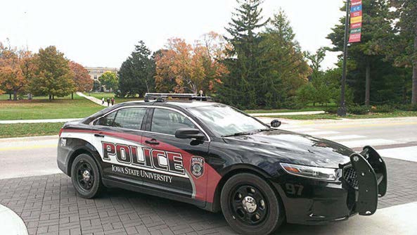 - Iowa State University switched from two-tone police vehicles, right, to all-black vehicles, below, with decals. This change was made when it was noticed that two-tone vehicles didn’t sell as well at auction. (Photo provided)