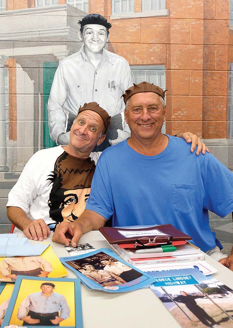 - Two Goober wannabes mug for the camera in front of a cardboard cutout of the real Goober character at last year’s Mayberry Days. (Photo provided)