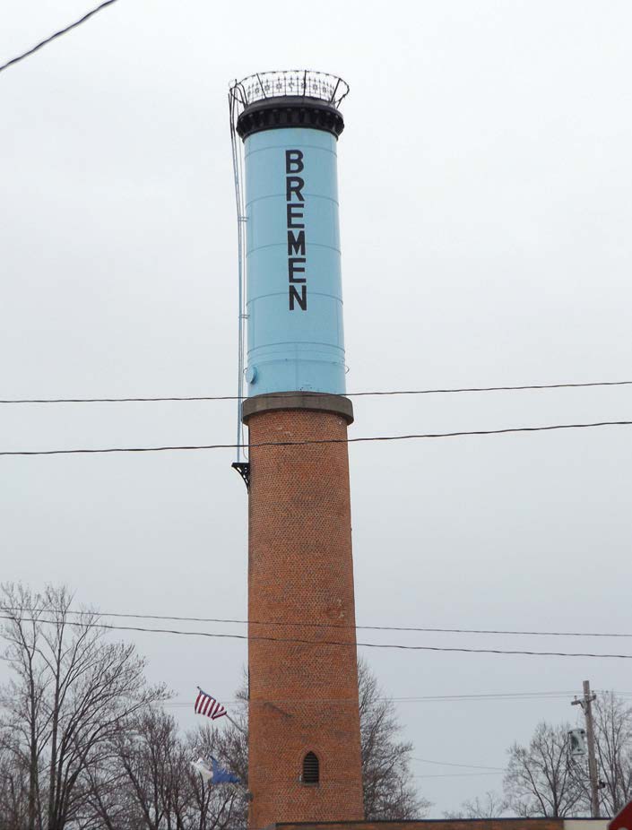 - This smokestack identifying Bremen, Ind., can be seen for miles. The town’s head mechanic often uses resurfacing to keep his town’s vehicles in top shape so they can be used several years longer. (Photo by Denise Fedorow)