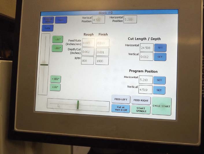 The touch control screen allows for simple programming for how much material needs to be cut, depth of cut, multiple passes and finishing speeds. The machine is moved by sliding a finger on the touch screen’s slide bar. The operator can lock the head in place, program the machine for the length of the part to be machined, set it and let it go. The machine will travel the exact distance it needs to and then return home.