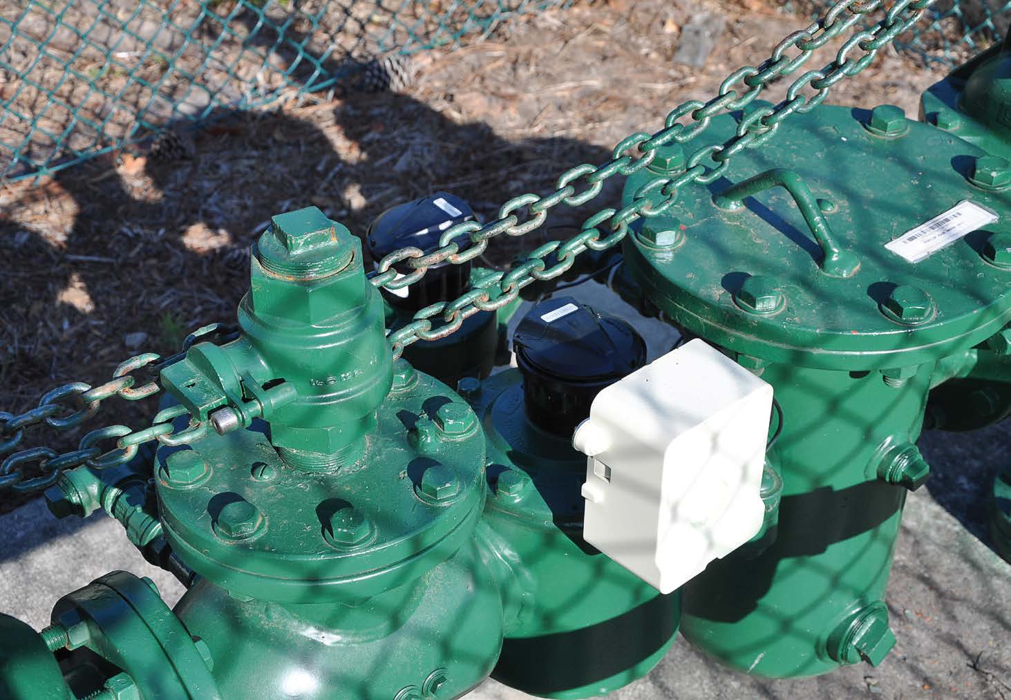 - Pictured is a 4-inch Neptune FM meter, which is connected to a Sensus MXU. The Sensus MXU will retrieve the readings from the Neptune water meter and transmit them to a tower where the data will be passed to a database.” (Photo provided by Lakeland Water Utilities)