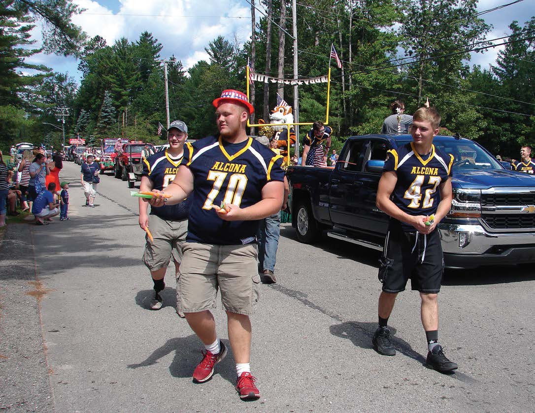 - Alcona Community Schools football players hand out frozen treats to parade spectators. (Photo provided)