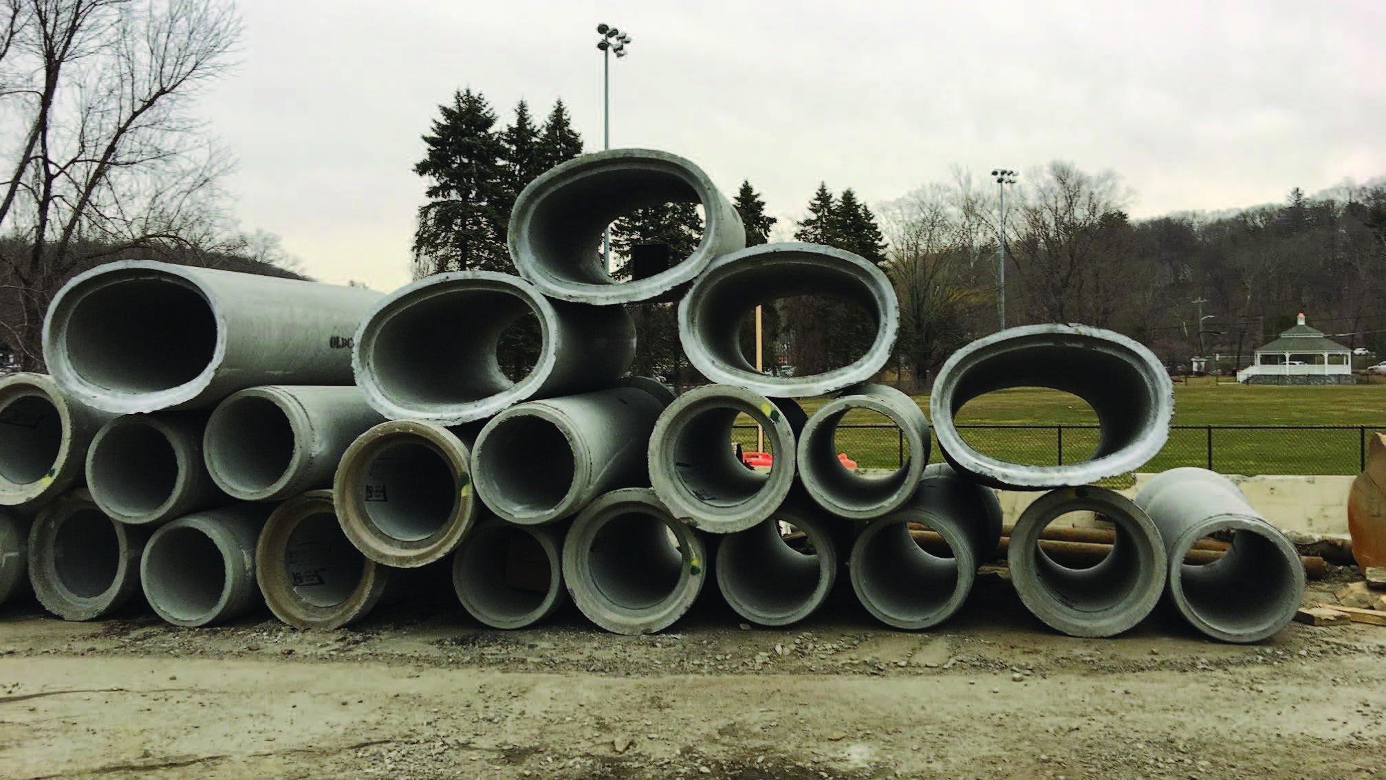 - Replacing more than 1,600 linear feet of cement-lined, ductile iron water main pipes as well as 900-plus feet of connection pipes of varying diameter was a major part of the infrastructure and streetscape plan. They were replaced with 24-inch reinforced concrete piping as well as a new 915-foot twin DIP. (Photo provided)