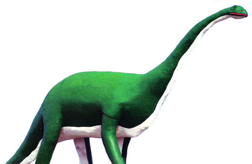 - The 50-ton, 80-foot-long brontosaurus was built along the highway when Interstate 90 replaced the former Route 16A. The eyes light up to beckon travelers to take the exit to downtown Wall. (Photo provided)