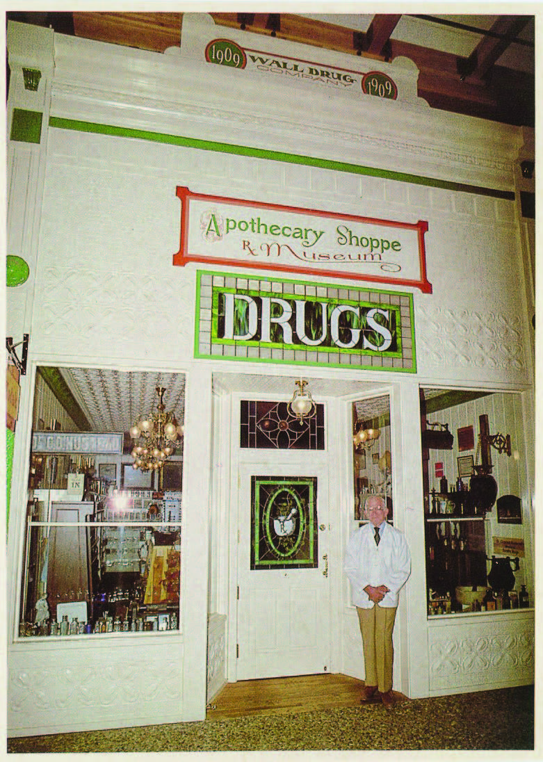 - Wall Drug founder Ted Hustead poses in front of the Apothecary Museum, a replica of the original drug store founded in 1909, two years aft er the town’s founding. Hustead purchased the store in 1931. (Photo provided)