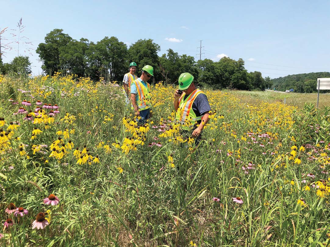 - ODOT employees examine the health of the agency’s pollinator habitat located in the state-owned right of way along state Route 207 in Ross County. (Photo provided)