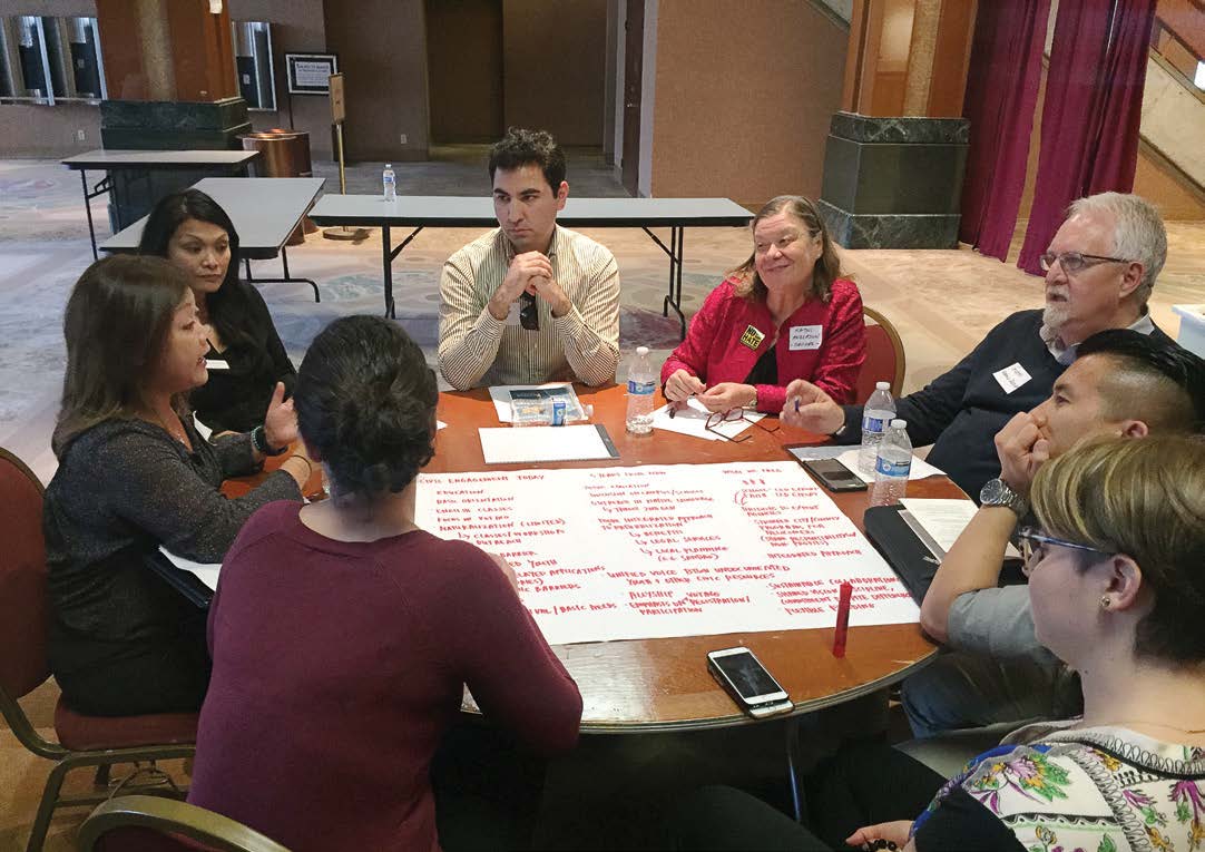 - A group of diverse people gather at a community planning forum sponsored by Welcoming San Diego. There they work on ideas to make San Diego a welcoming city for immigrants. (Photo provided by Welcoming San Diego)