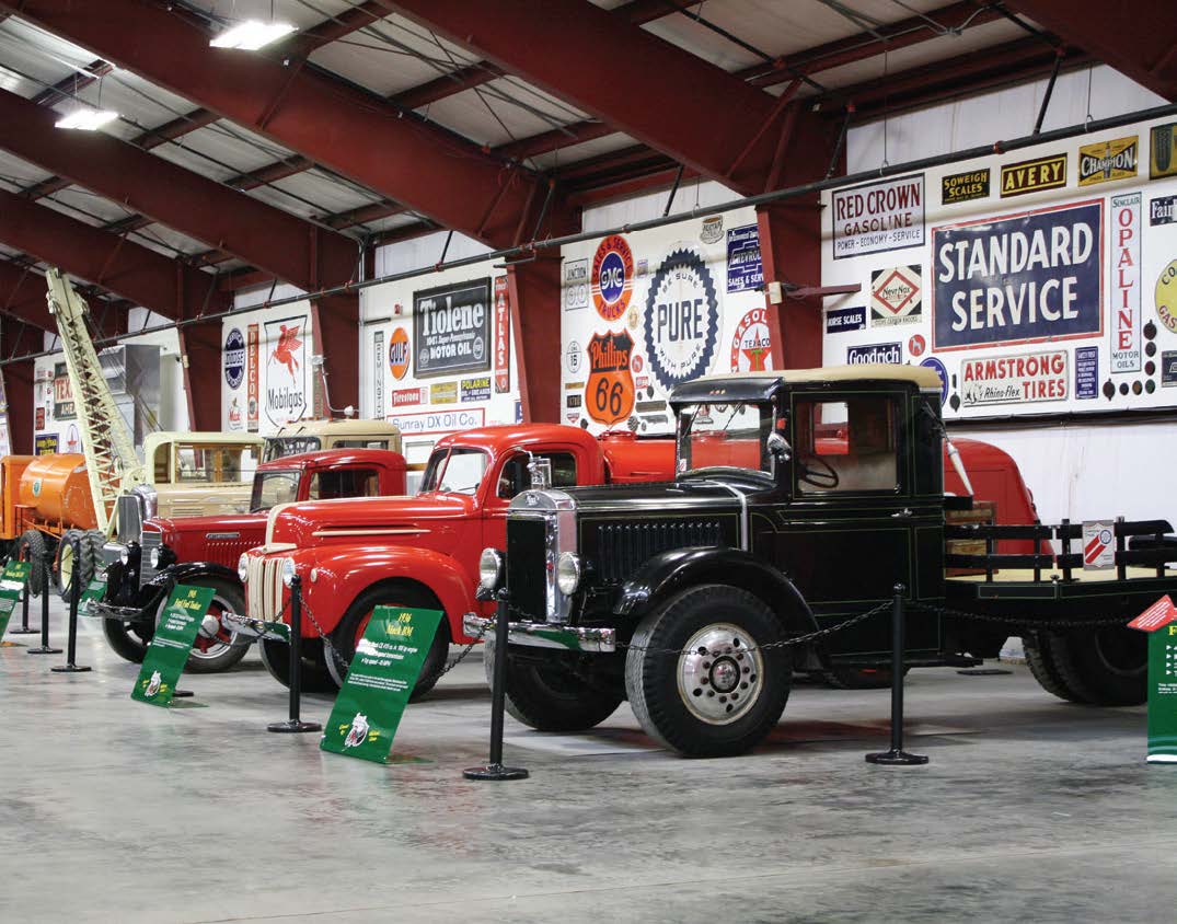 The Iowa 80 Trucking Museum houses more than 100 antique trucks, at least one dating to 1910, with 60 on exhibit at any time. Also displayed are 304 original petroliana signs; 24 vintage gas pumps; and hundreds of other original artifacts, miniatures and truck-related toys.