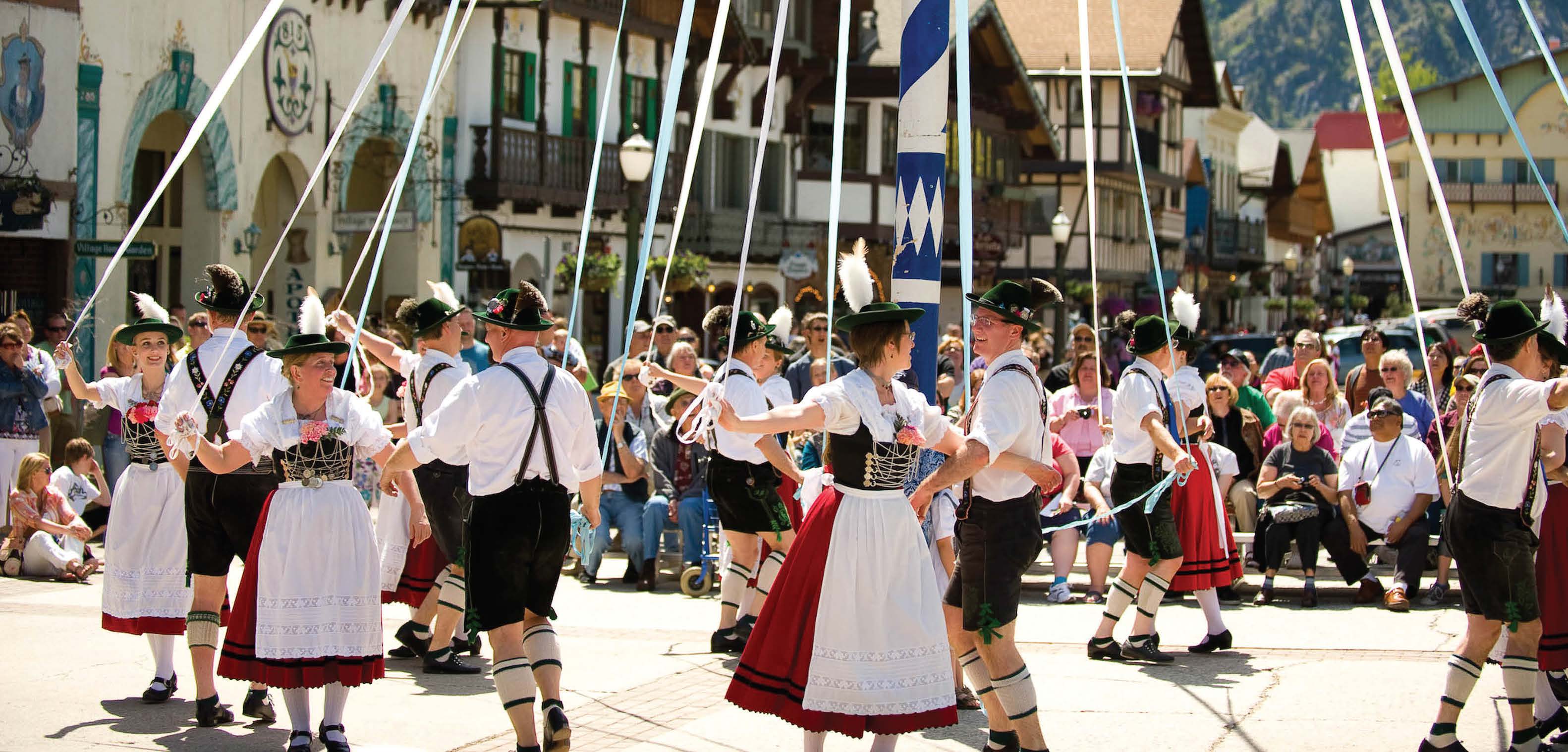 - Dancers revel around the maypole in the town square during Maifest, a German celebration celebrating the arrival of spring. The 2019 festival will be held Saturday and Sunday, May 11-12. (Photo courtesy of Icicle TV)