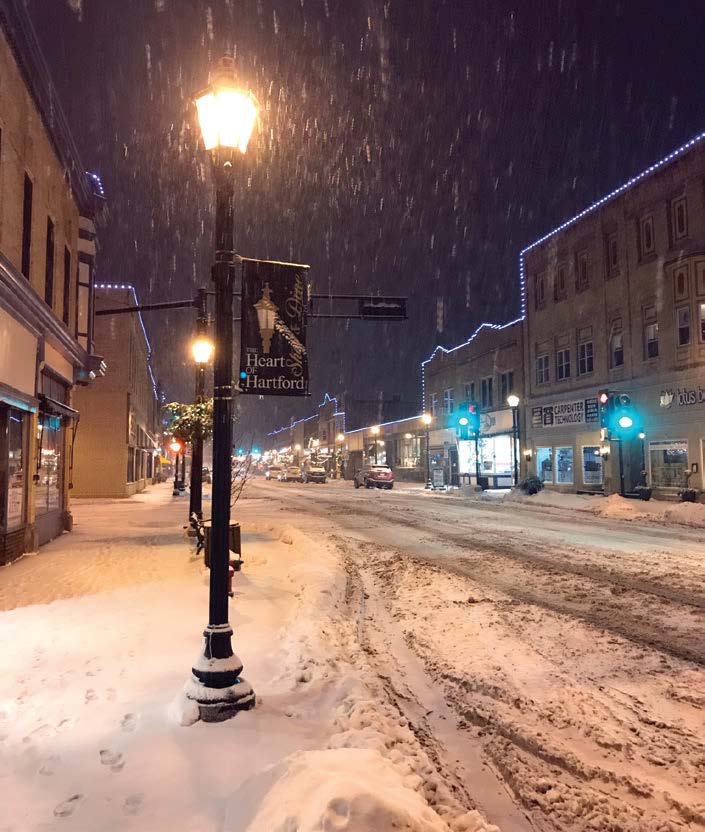 - This nighttime shot of Hartford, Wis., shows the downtown area, including city hall. Hartford is located about 35 miles north of Milwaukee, Wis. (Photo provided)