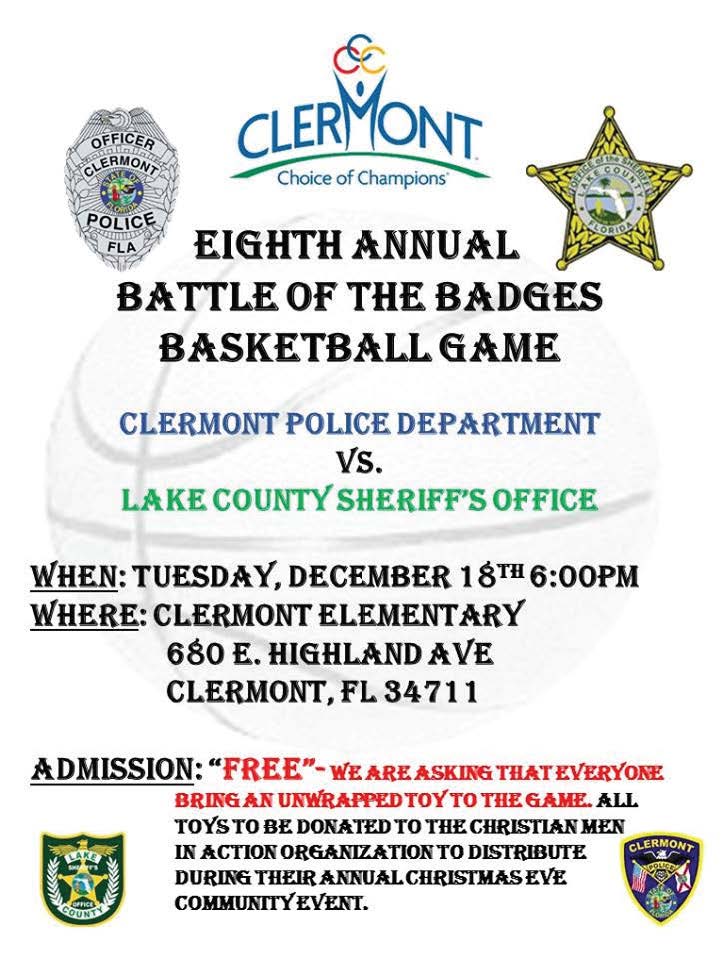 - Pictured is Clermont, Fla.’s, poster for the 2018 Battle of the Badges basketball game. (Photo provided)
