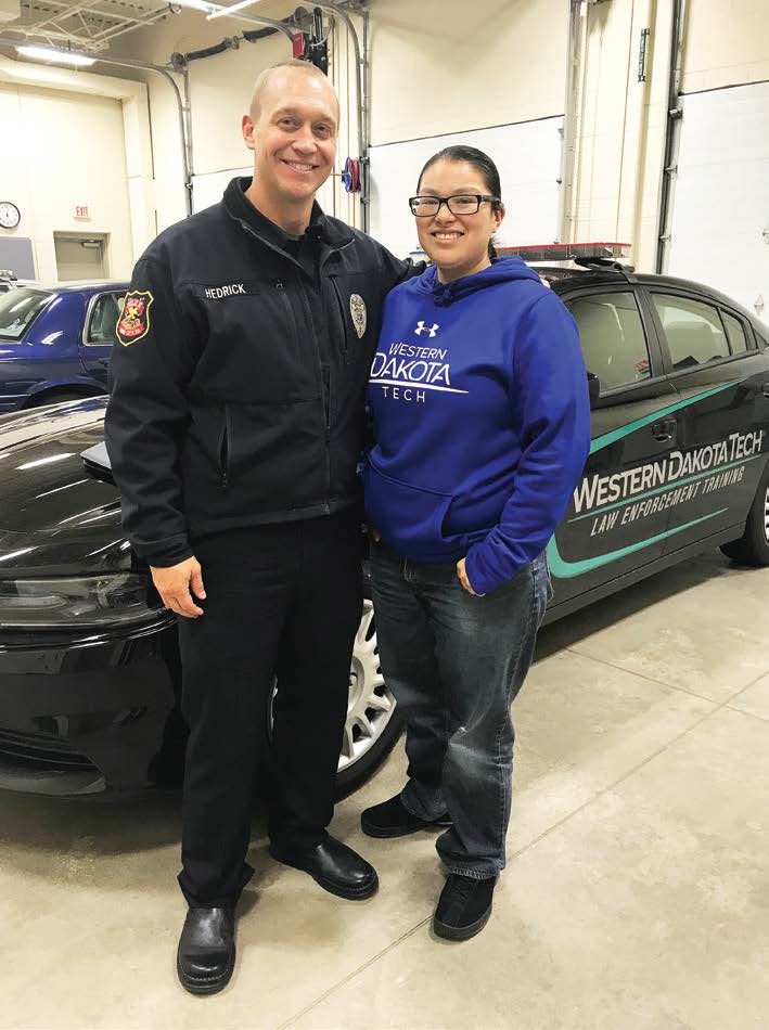 - Rapid City, S.D.’s, Assistant Police Chief Don Hedrick was partnered with Cecilia White Eagle in the Akicita Mentorship Program through Western Dakota Technical Institute. Hedrick has arranged for White Eagle to shadow officers on day-to-day operations of the force so she can discern whether law enforcement is the career she’d like to pursue after college. (Photo provided)