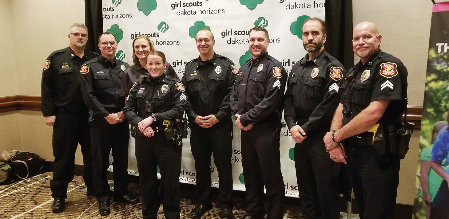 - Several members of the Rapid City Police Department attended a Girl Scout Dakota Horizon’s Women of Distinction luncheon in November 2018. Members of the department make a concentrated effort to be involved in their community and welcome community members into the department. From left are Capt. James Johns, Lt. Eli Diaz, Jenni Clabo, Sgt. Kathleen Phillips, Asst. Chief Don Hedrick, Sgt. Ryan Phillips, Sgt. Warren Poches and Sr. Ofc. Fred Baxter. (Photo provided)