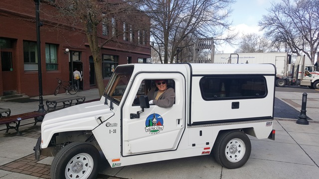 - The Eco Driver Program includes an alternate fuel transition plan that will replace traditional fuel-operated vehicles with electric vehicles where there’s an opportunity. Currently, Moscow has one full EV in the water department while a number of other vehicles have been identified for transition in the upcoming years. Pictured is Moscow Mayor Bill Lambert. (Photo provided)