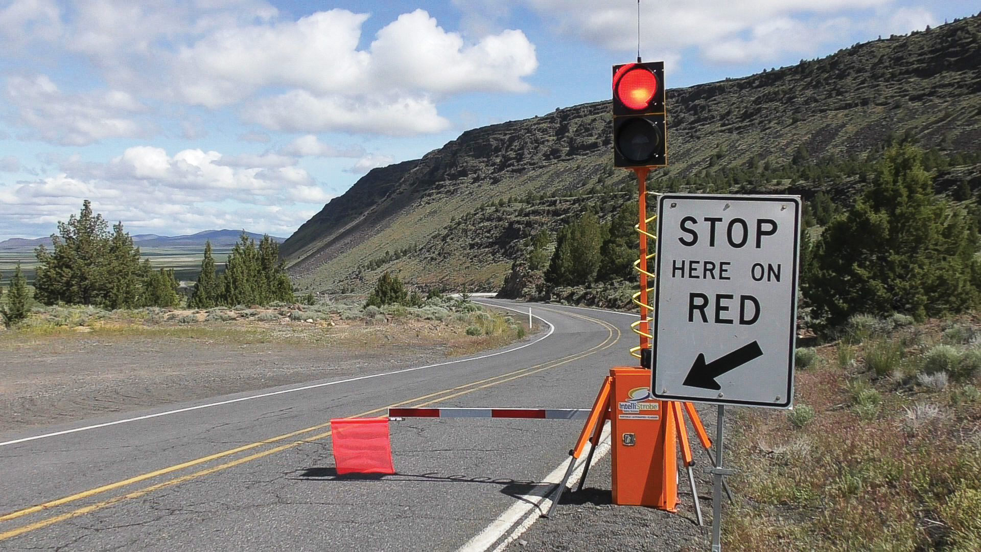 - Oregon Department of Transportation’s automated flagger assistance devices uses red and yellow indicator lights. The lack of a green light can lead to some confusion at times for motorists, which is why ODOT found a media campaign to be crucial. (Photo provided)