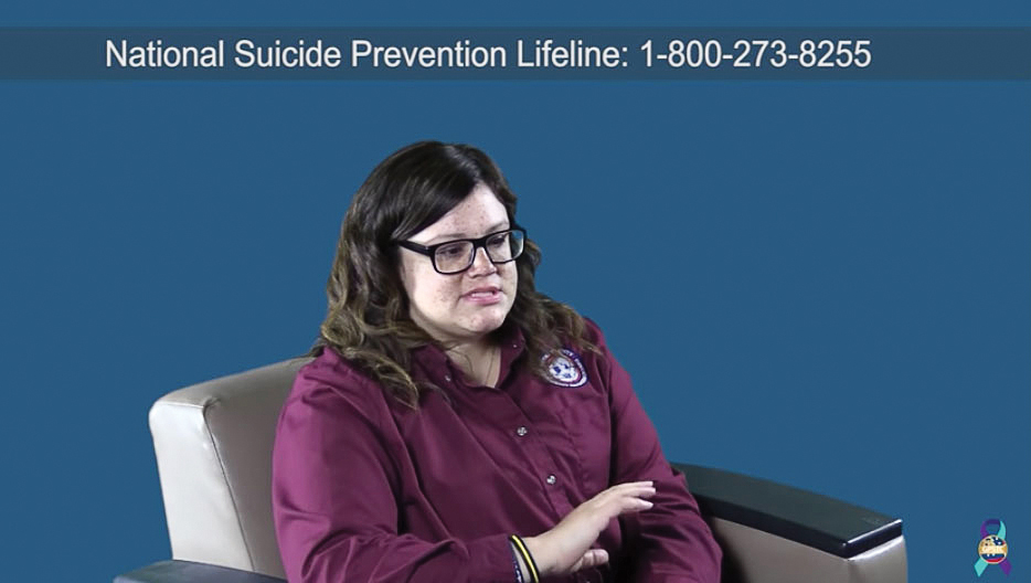 - One participant in “Start the Conversation” who shared her own personal experiences dealing with stress and trauma in a dispatch center was Laloni Smith. As each participant shared their experiences, the National Suicide Prevention Lifeline phone number, (800) 273-8255, scrolled across the top of the screen. (Photo provided)